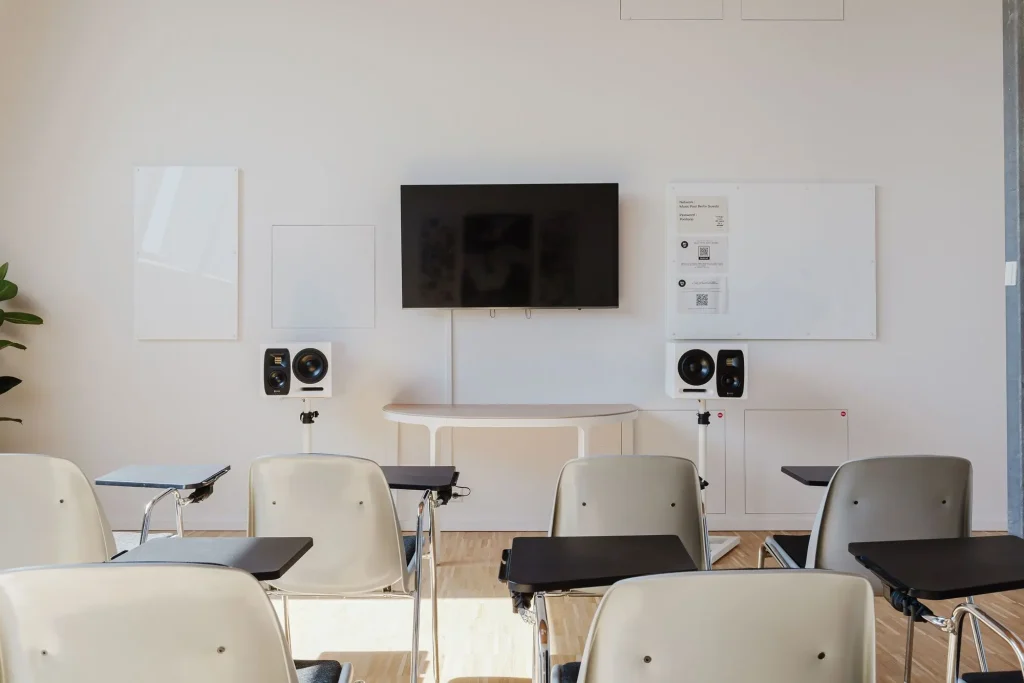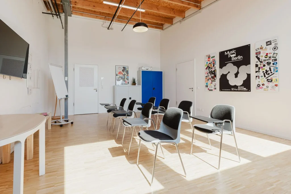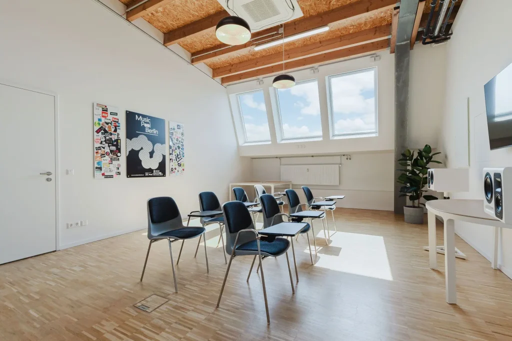 Führe deine Workshops, Tagungen oder andere Meetings in der inspirierenden Atmosphäre des HOUSE OF MUSIC in Berlin durch. Der Raum ist perfekt geeignet für Workshops mit bis zu 15 Personen, Team-Meetings oder kleine Networking Events.